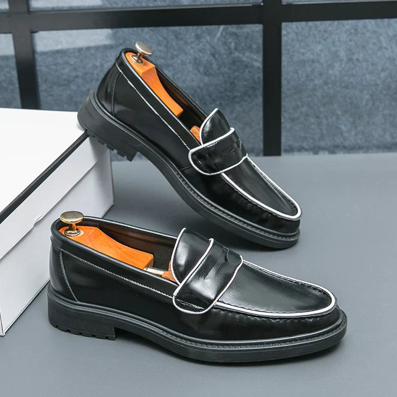 Elevate your everyday look with these stylish leather penny loafers, the ideal choice for anyone seeking a blend of functionality and classic design, perfect for those who appreciate timeless style and quality craftsmanship.
